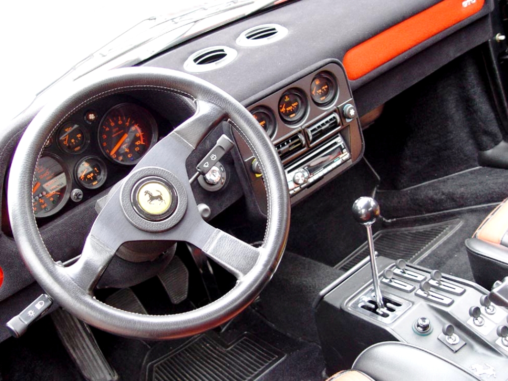 of 2557 lb 'dry' weight. (… so quite different to a 308) LHD 2-seat Berlinetta by Pininfarina, 0.38 Cd, utilising 'rosso' Kevlar composites and aluminium doors (some cars had steel doors) on a tubular steel space-frame created by Ferrari F1 designer Harvey Postlethwaite. Looks fantastic even in negative ... Double-click thumbnails